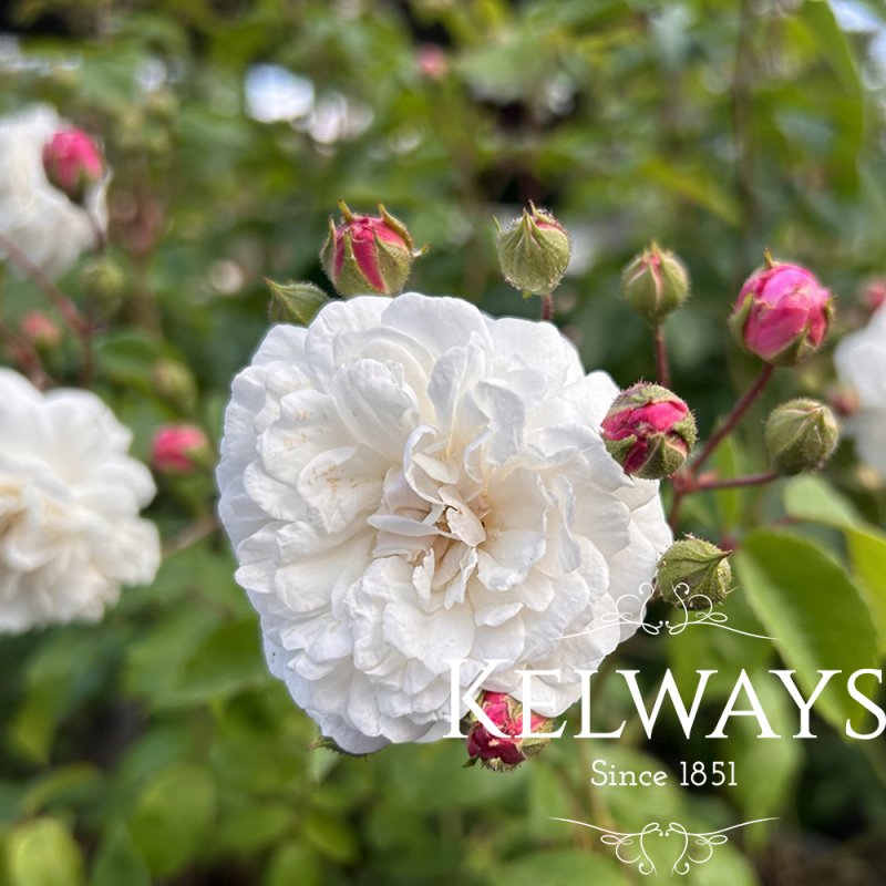 A vigorous semi-evergreen shrub with relatively thronless stems and glossy dark green leaves producing clusters of scented creamy white, sometime blush-pink flowers in summer. All the roses we sell are field-grown and lifted when conditions are at their optimum to ensure strong, quality plants and are potted-up as soon as they are received into the nursery. This ensures that the roots do not dry out and gives the plant the best start. Therefore, do not be surprised if the soil falls away from the root when planting, particularly during the winter and early spring months. We use a high quality commercial compost mix when potting our roses and recommend you incorporate this into the planting hole when planting out in the garden.